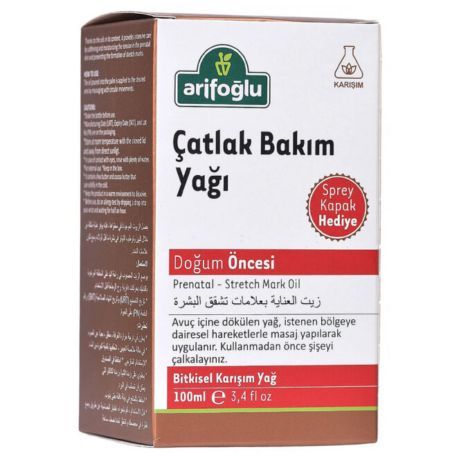 FUNCTION OF THE PRODUCT: Thanks to the oils on it, it provides intensive care by softening and moisturizing the stretch in the skin before giving birth.