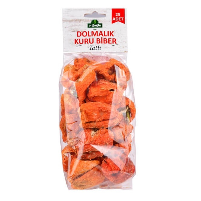 Yazın en taze ve etli kırmızı biberlerinin, Anadolu’nun sıcak güneşi ve doğal rüzgarıyla buluşmasıyla hazırlanan Arifoğlu Dolmalık Kuru Biber, geleneksel mutfağımızın en kıymetli lezzet hazinelerinden biridir. Özenle seçilen, içleri temizlenip iplere dizilen biberler, kuruma sürecinde suyunun büyük bir kısmını kaybederken aromasını ve besin değerlerini içine hapseder. Sonuç; taze biberin sunamayacağı o hafif isli, yoğun ve karakteristik bir lezzet patlamasıdır. · Geleneksel Güneş Kurusu: Endüstriyel işlemlerden uzak, tamamen doğal güneş ışığı altında kurutularak o otantik lezzetine kavuşmuştur. · Yüksek Aroma ve Renk: Pişme esnasında tencereye saldığı canlı kırmızı rengi ve iştah açıcı kokusuyla fark yaratır. · İdeal Etli Yapı: Kurutulurken formunu koruyan kaliteli biberler kullanılmıştır; bu sayede haşlama ve pişirme sırasında dağılmaz. · Katkısız ve Doğal: Hiçbir koruyucu veya yapay parlatıcı içermez, dalından sofranıza en saf haliyle ulaşır. · Güneydoğu Usulü Kuru Dolma: Bol sumaklı, nar ekşili ve acılı iç harçla hazırlanan o meşhur ekşili dolmaların ana malzemesidir. · Etli ve Zeytinyağlı Dolmalar: İster kıymalı ister zeytinyağlı olsun, kuru biberin kendine has dokusu yemeğe derinlik katar. · Hazırlama Notu: Kuru biberleri kullanmadan önce kaynayan suda 5-10 dakika, hafifçe yumuşayana kadar haşlayın. Ardından soğuk sudan geçirerek süzün; bu işlem biberin diri kalmasını sağlar. · İçindekiler: Kurutulmuş Dolmalık Biber. · Saklama Koşulları: Kuru gıdaların ömrünü uzatmak için nemden ve doğrudan güneş ışığından uzak, serin ve kuru bir yerde muhafaza ediniz. Mümkünse bez torbalarda saklamak hava almasını sağlayacaktır. · Doğallık Notu: Doğal kuruma süreci nedeniyle biberlerin boyut ve renk tonlarında küçük farklılıklar olabilir; bu, ürünün doğallığının bir göstergesidir. Uzman Tavsiyesi: Dolmalarınızı pişirirken tencerenin en altına birkaç parça kemikli et veya kaburga koyarsanız, kuru biberin isli aromasıyla etin lezzeti birleşerek unutulmaz bir ziyafete dönüşecektir. Yanında bol naneli bir süzme yoğurt ile servis etmeyi unutmayın!Arifoğlu Dolmalık Kuru Biber – Güneşin Tadı, Sofraların Vazgeçilmezi